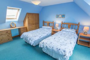 One double and one twin bedroom, bathroom (with WC, wash hand basin and shower).
